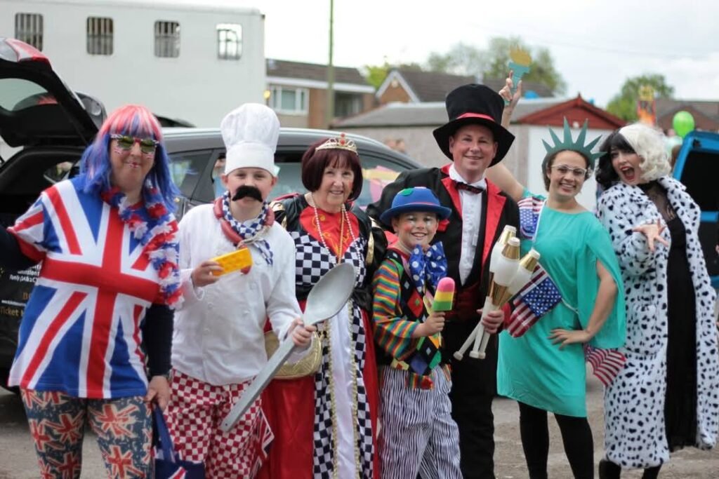 The procession route is approximately 4 1/2 miles with a 20 / 30 minute break at Ossett Community centre half way round. The procession itself consists of decorated floats, entered by local schools, organisations and companies. Adults and children in a variety of fancy dress costumes, Marching Bands, Majorettes, Youth Groups, Horses along with various other competitors and of course the May Queen and her attendants. Vintage and Classic cars are also encouraged to enter the procession. There is a Funfair, provided by ”Robinson’s for more than 100 years “, within walking distance which has the various rides and usual type of entertainment associated with them.